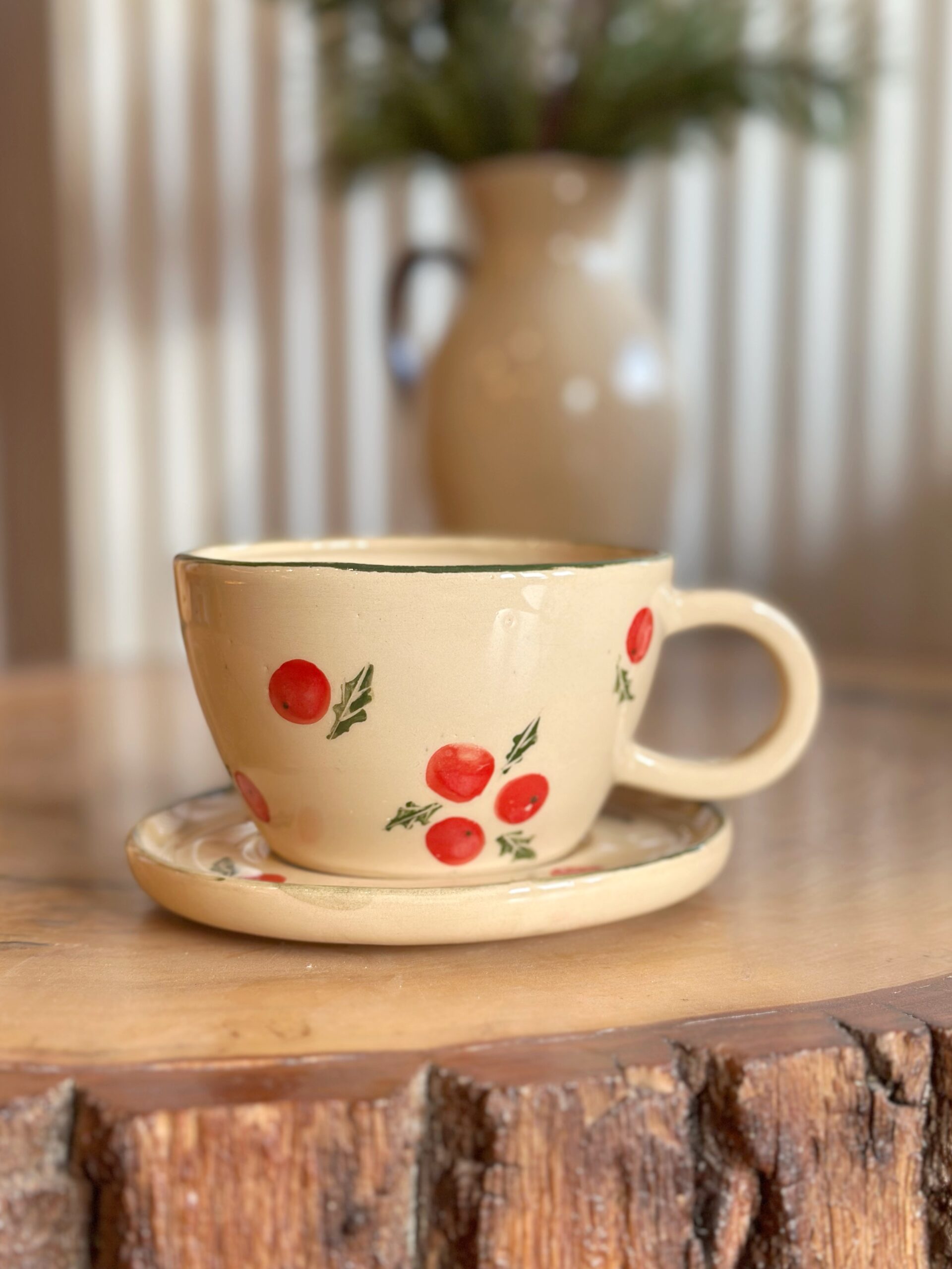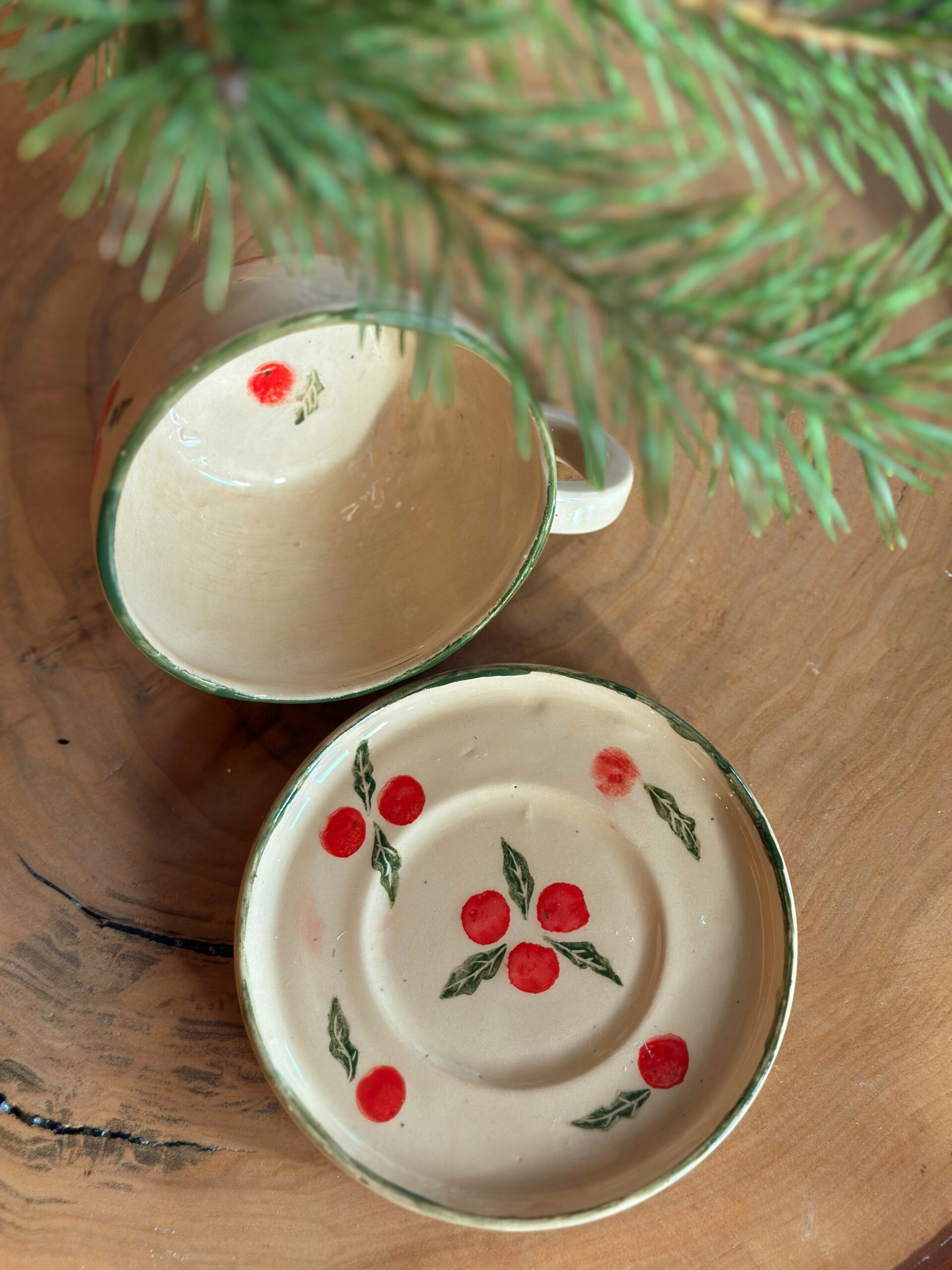 Filiżanka ze spodkiem z malowaną przeze mnie ręcznie jemiołą