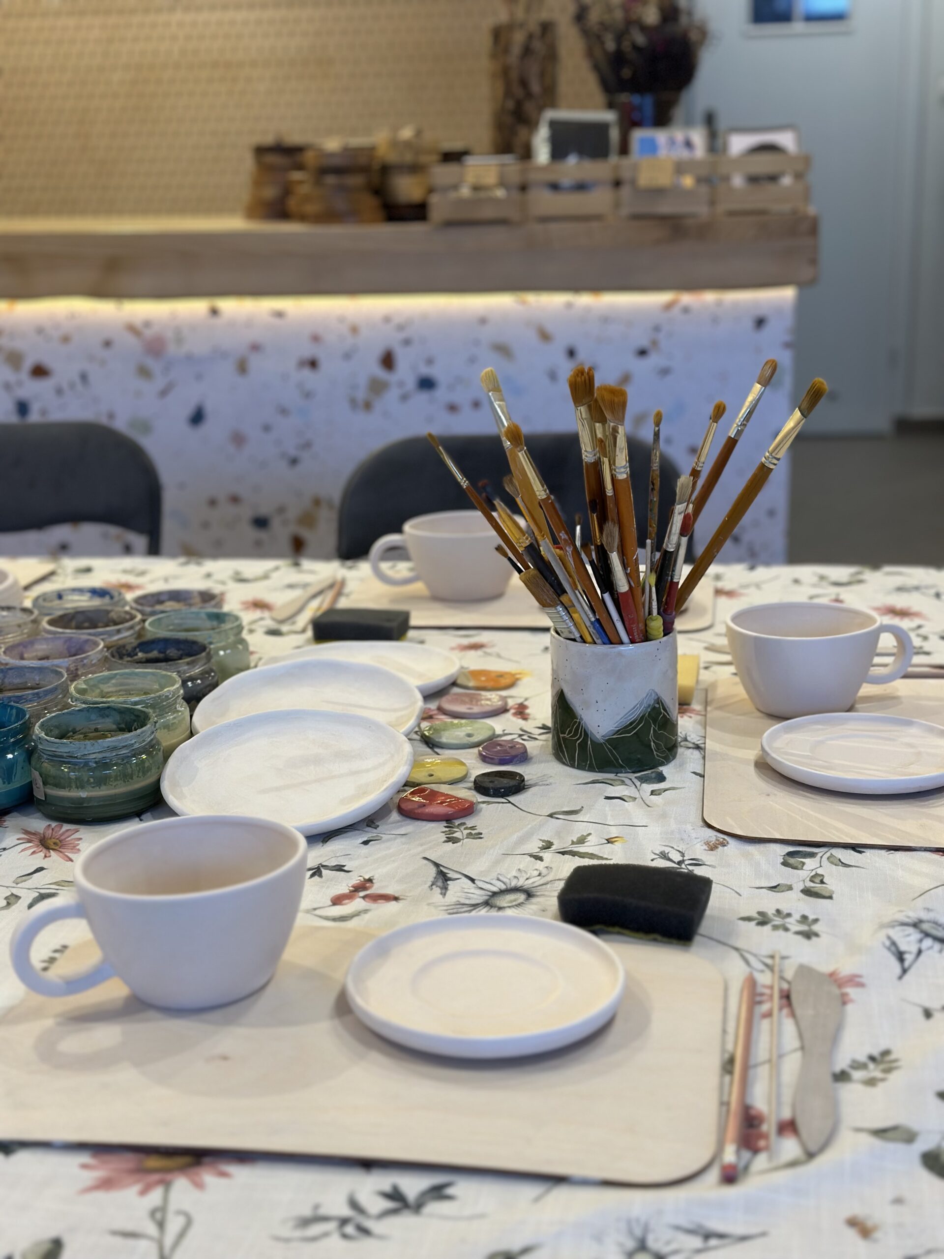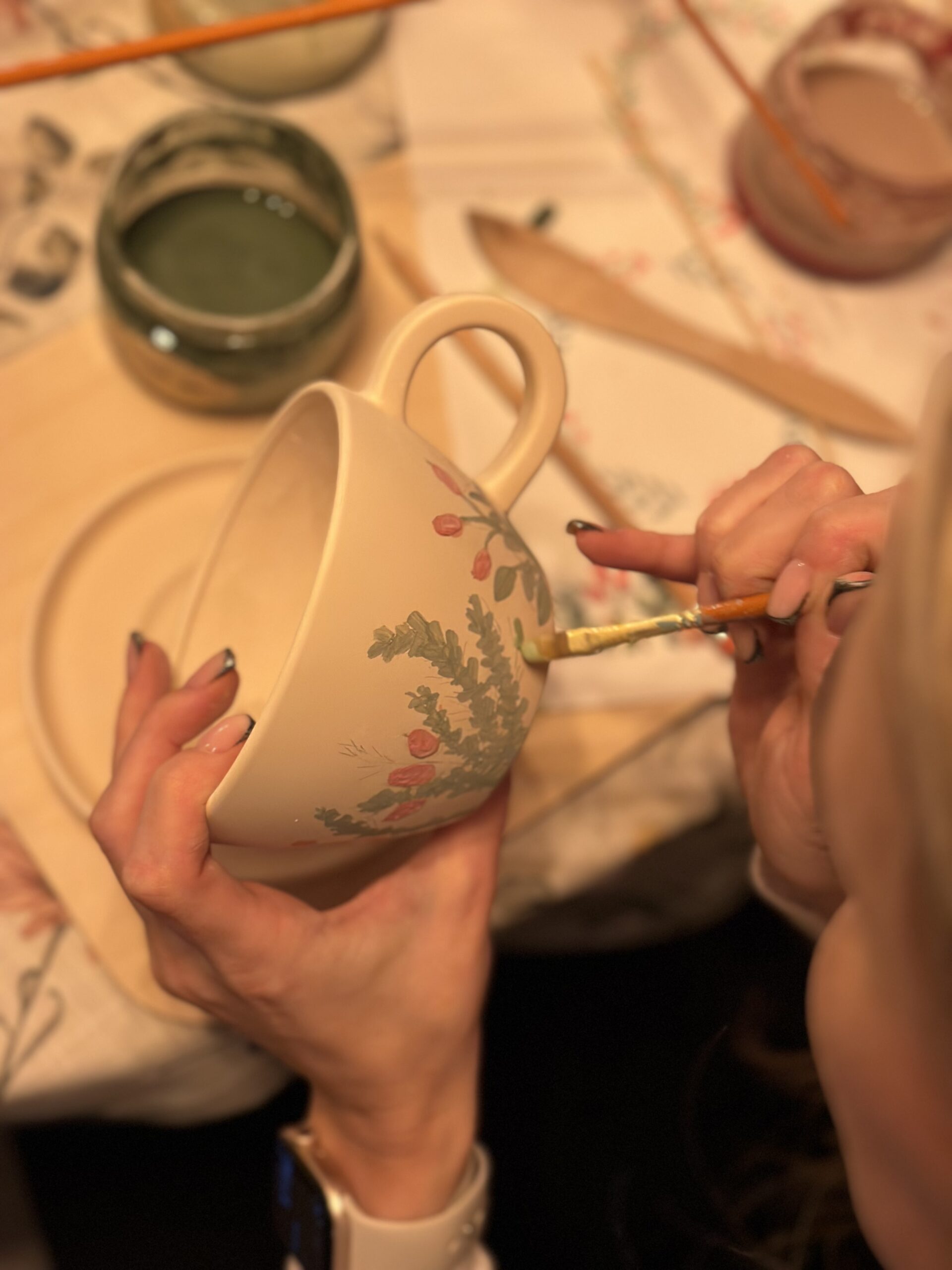 Wybierzesz dostępny kształt talerza, kubka, czarki lub filiżanki, na który przeniesiesz swoją artystyczną wizję za pomocą barwionej glinki tworząc własną opowieść na wybranej rzeczy poprzez rysunek na powierzchni lub wykonywanie artystycznych struktur 🙂